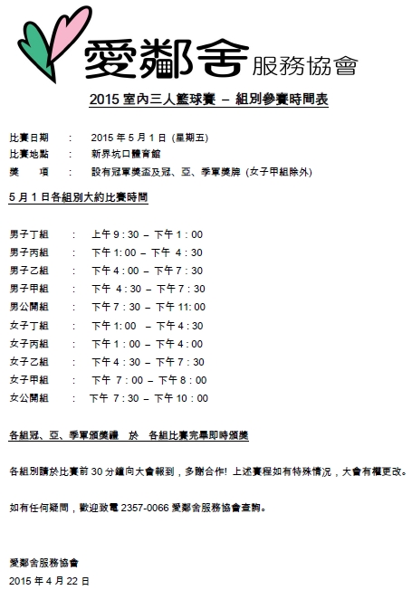 | 下載 最新組別參賽時間 (PDF 版本) |