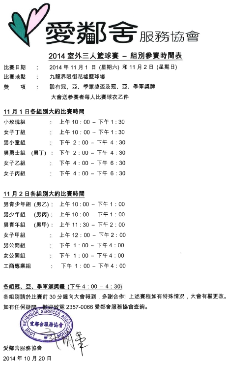 | 下載 10月20日分組比賽時間表 (PDF 版本) |